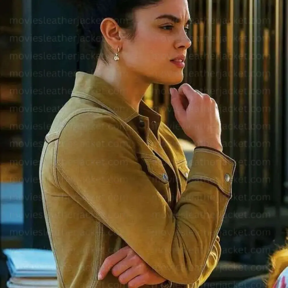 Into your wardrobe bring the Ballard 2025 Martina Castro Suede Jacket which is inspired by Victoria Moroles’ which is a picture of effortless style in the film. This jacket which is a fine balance of vintage charm and modern pizazz does in fact capture the bold yet refined personality of Martina Castro’s character which in turn makes it the perfect outerwear piece for fashion and film fans alike. Crafted of high quality suede this jacket has a soft luxurious feel and natural texture which takes any look up a notch. The material also which improves the durability of the piece also adds a warm rich look that is perfect for fall and winter. Inside we have a smooth viscose lining that which brings comfort, breathability and in all day wear quality. The jacket has a clean button down front which gives it a very put together and structured look. It has a shirt style collar which brings in that classic element and at the same time gives it a casual yet cinema ready feel. The brown color is very versatile and works great with jeans, boots or even under layering pieces which in turn gives you endless options for a daily look or a stand out outfit. Functional features include two front pockets for convenience and a small inner pocket which you’ll find very useful. Also we have full length sleeves which button at the cuff which is a detail that gives the piece a very put together look which does very well for both casual and formal wear. Whether you put in to play Victoria Moroles’ red carpet look from screen or if you are into classic luxury design the Ballad 2025 Martina Castro Suede Jacket is your piece. It is a stand out for those of you that go for film inspired fashion that is at once classic and everyday. Step into the future at 2025 with this expertly designed suede jacket which brings to life a truly movie like addition to your wardrobe.