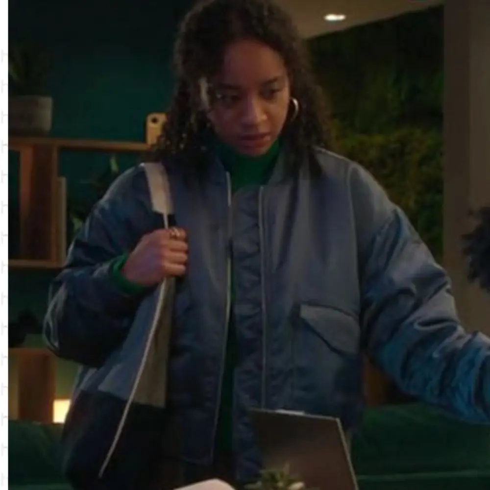 Black Mirror S07 Maria Blue Bomber Jacket – Siena Kelly Polyester Outfit