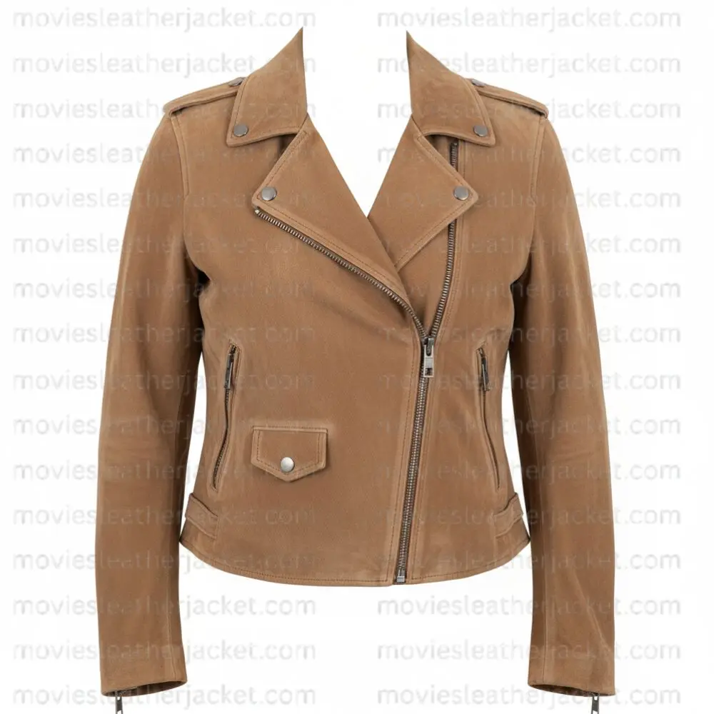Channel the grace that Clara Indrani brought to the role of Molly Sardana in Fool Me Once (2024) Outfit with this great brown suede jacket. Made from high quality suede the piece is a perfect balance of style and substance which we think you will love whether you are a fan or just a fashion enthusiast. The jacket has a smooth front zip, a classic lapel collar, and full length sleeves which create a sharp, elegant fit. It has a soft viscose lined interior for all day wear comfort. Also it has three front and one inside pocket which adds to both the jacket’s function and fashion. Throughout the cooler seasons this Molly Sardana suede jacket is a great piece to layer in. We put it on over jeans or a dress for that modern take which also has a filmic touch. Shop today and we’ll include free international shipping with your order at Movies Leather Jacket.