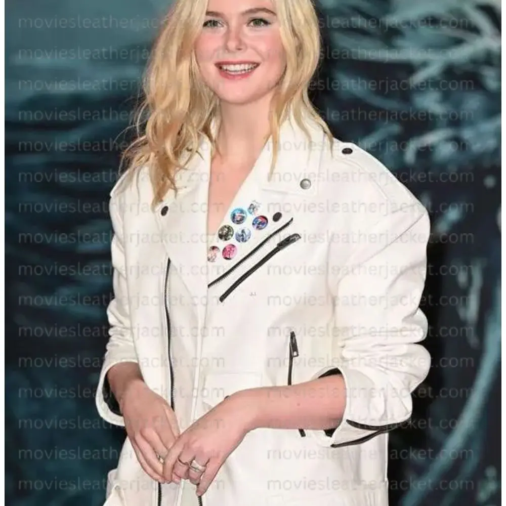 Influenced by Elle Fanning’s classic role in Predator Badlands 2025, this White Leather Jacket is a great mix of assertive style and contemporary elegance. We designed it for movie fans and fashion fans which also brings the cinema fashion to your door. From premium quality real and faux leather this jacket is designed for durability without sacrificing that which is refined and put together look. Soft viscose inner lining for comfort which in turn gives this piece a day long wearability. Full length sleeves and a lapel collar give the jacket a classic look that pairs well with anything which is great for casual events or when you want to make a fashion statement. The zipper at the front introduces an updated look to the jacket that also which very easy to wear over hoodies, t-shirts, or sweaters. Also, with the two external pockets and one internal we do have practical space for your daily needs like your phone, wallet, or keys. In terms of look it is very clean lined and free of patches which in turn makes it very versatile to pair with jeans, skirts, or leather pants thus making it a real stand out piece in your collection. The white color is a stand out which brings a fresh, bold touch to the look. Each stitch is put in place to reproduce the original character design, we do that which brings in to play the feel of the authentic with a modern twist. No matter if you are going to a movie theme get together, out with friends or just upping your every day street style game this jacket is your go to for fashion and comfort. Adopt a piece from the world of Hollywood as you rock the Predator Badlands 2025 Thia White Leather Jacket a must for fans looking to recreate Elle Fanning’s cool and assertive look. This unique, tough, and stylish leather jacket brings classic cinema into today’s fashion.